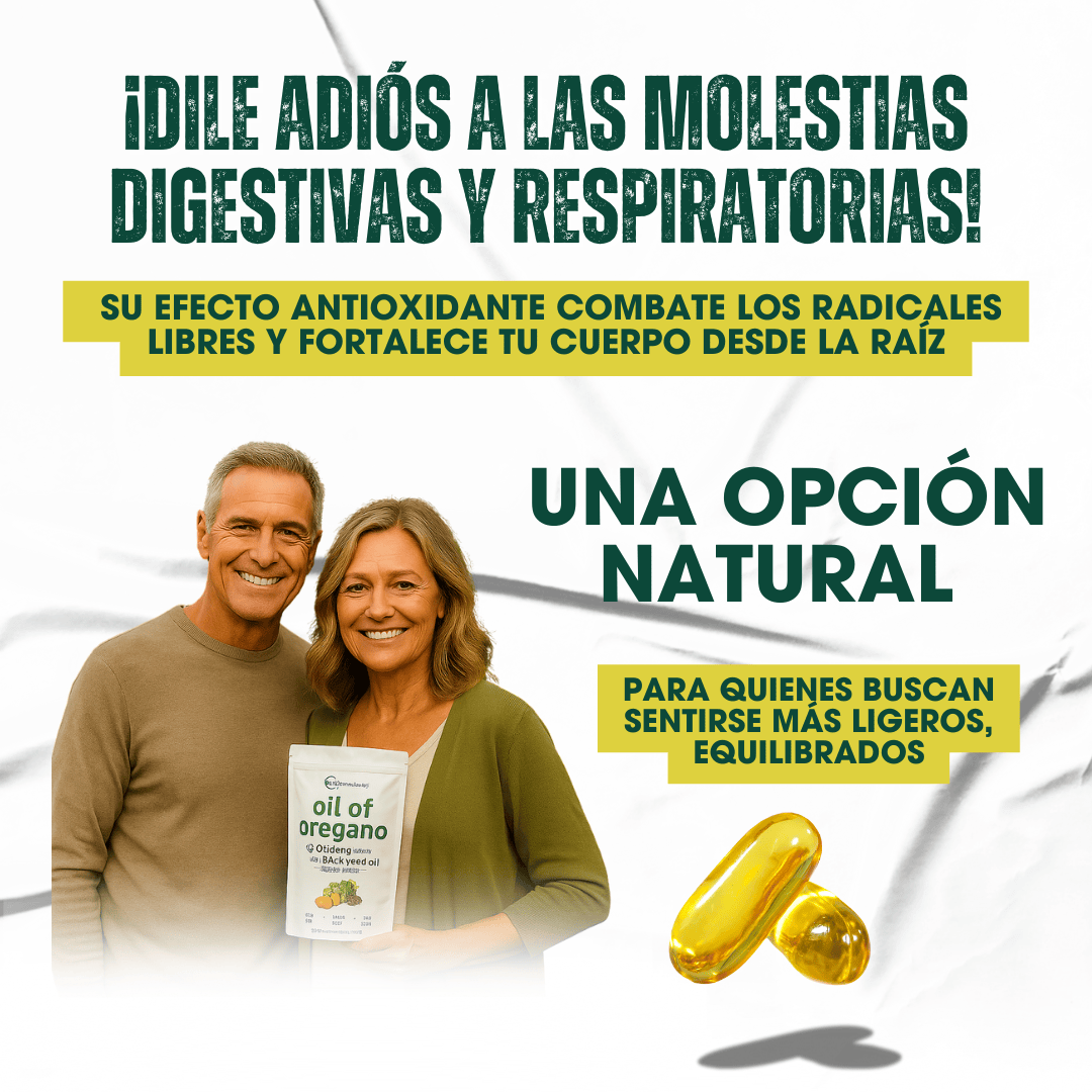 Suplemento natural 2 en 1 con aceite de orégano y semilla negra para fortalecer el sistema inmune. Apoya la salud respiratoria, digestiva y ofrece protección antioxidante diaria.