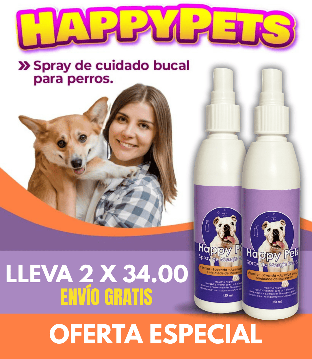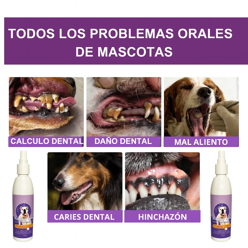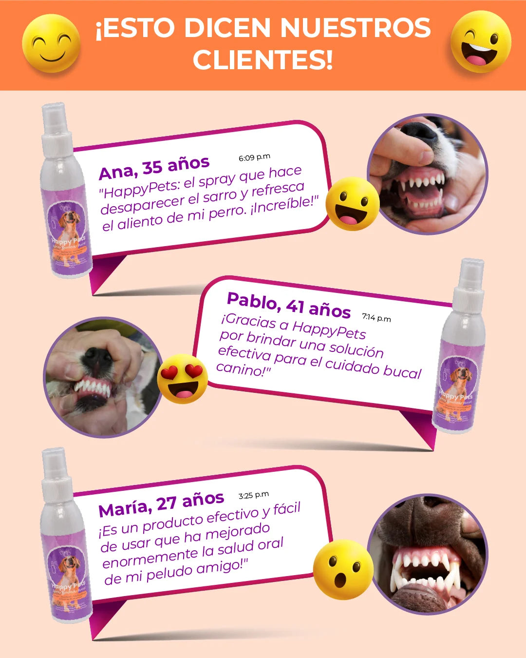 ENJUAGUE BUCAL HAPPY PETS ® ELIMINA EL MAL ALIENTO Y SARRO DE TUS MASCOTAS
