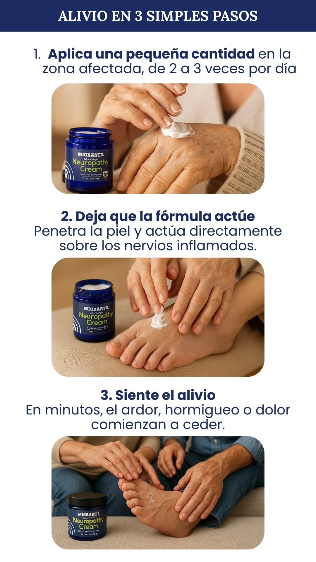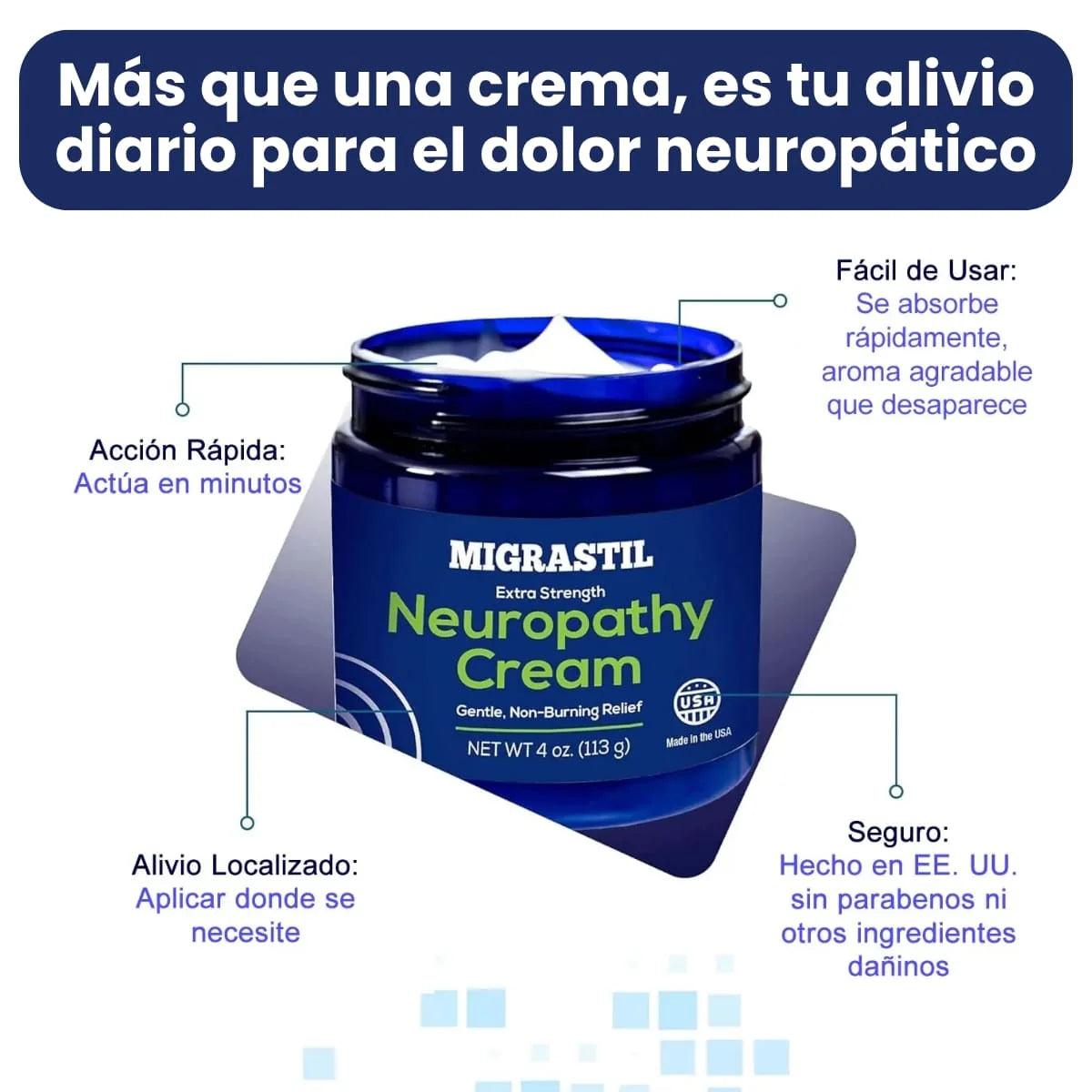 Crema natural de acción rápida formulada para aliviar el dolor y la incomodidad causados por neuropatía, tensión muscular o inflamación localizada.